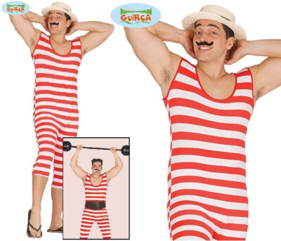 Mens Victorian Old Time Bather Fancy Dress Costume Bathing Strongman Outfit Fg Ebay