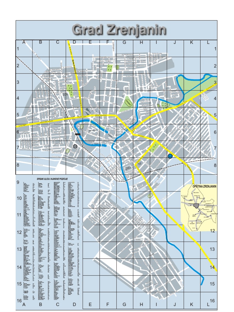Zrenjanin Mapa Grada Sa Ulicama